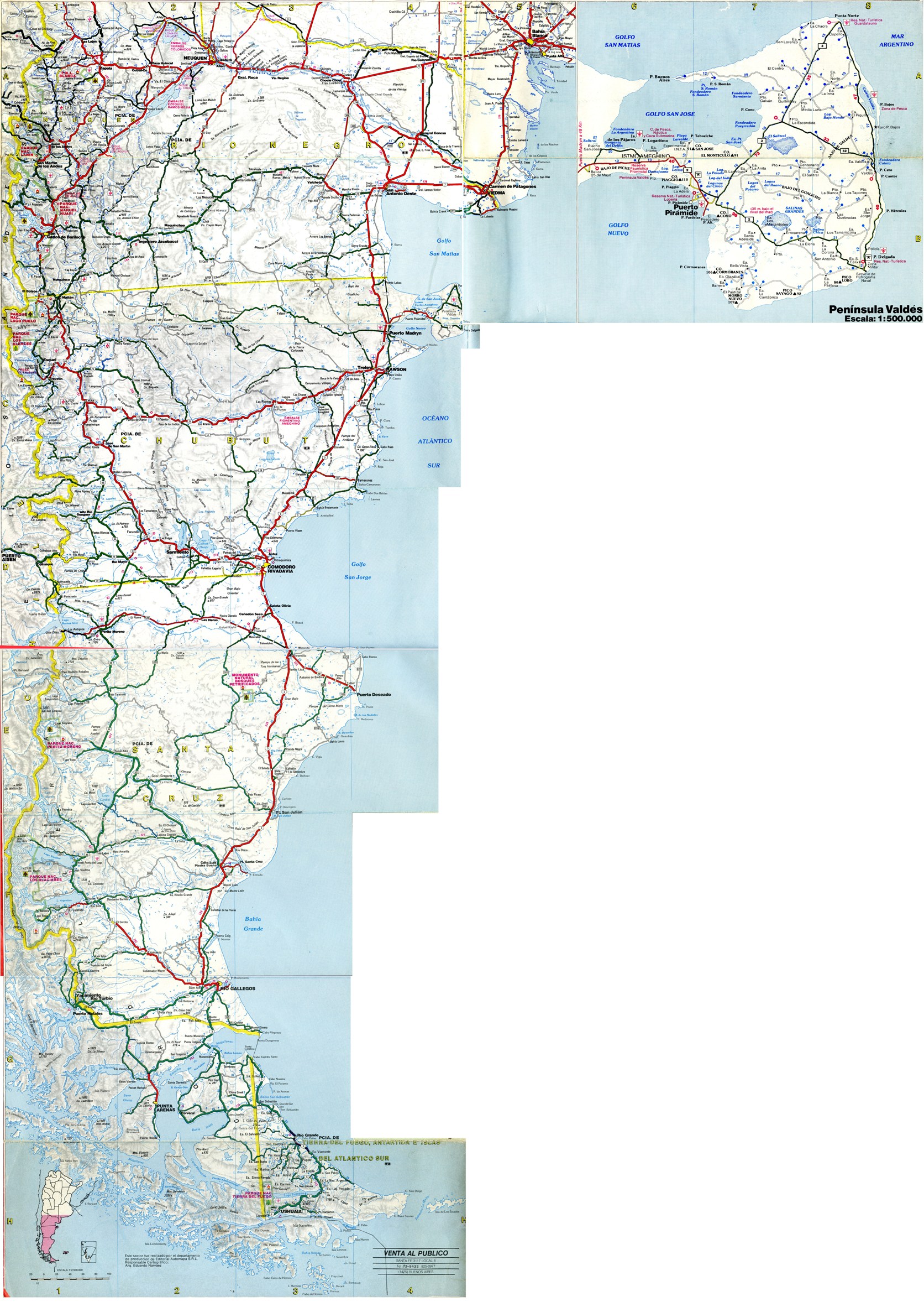 Voici une carte routière de la Patagonie